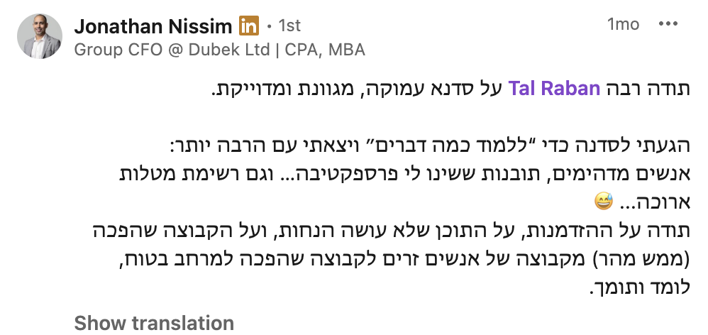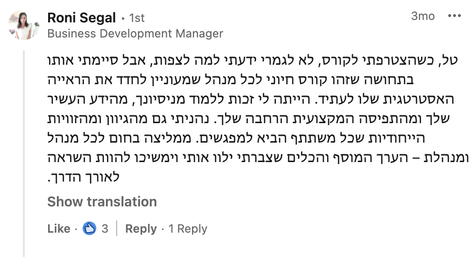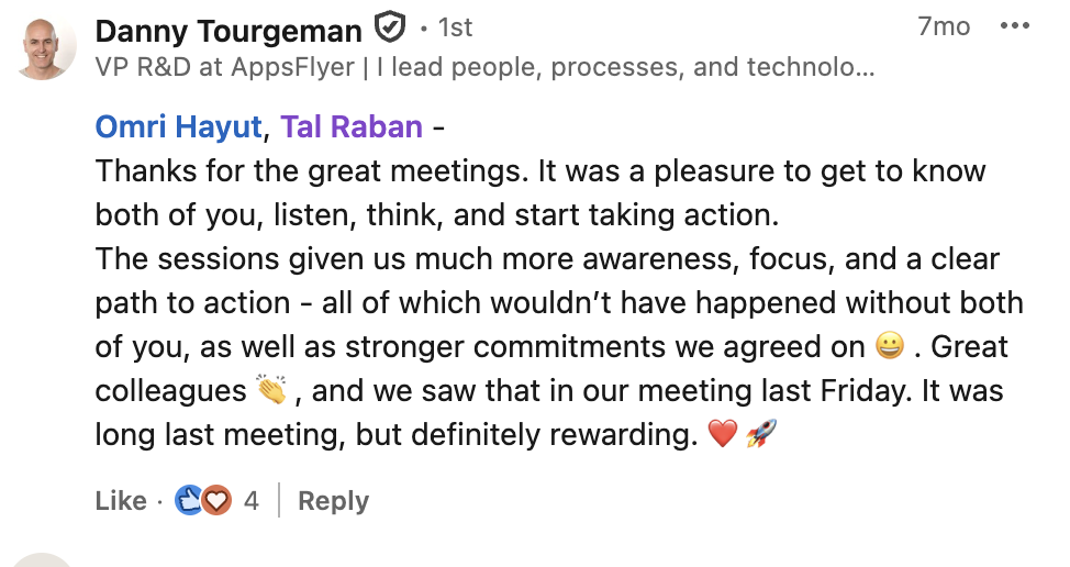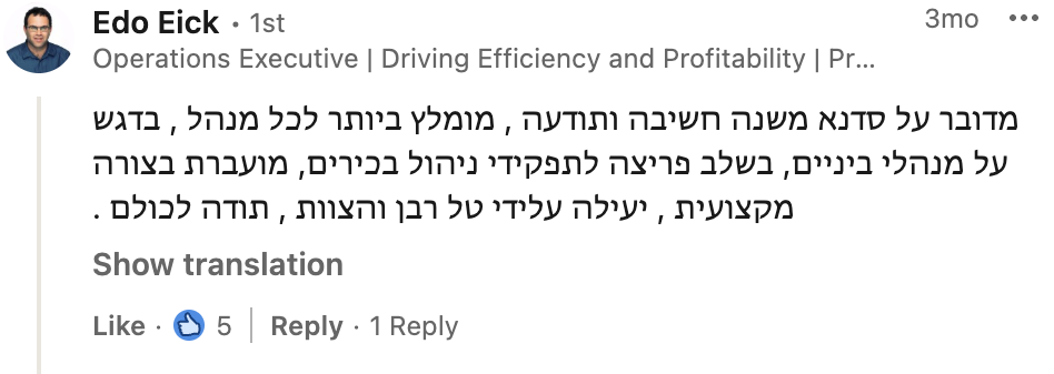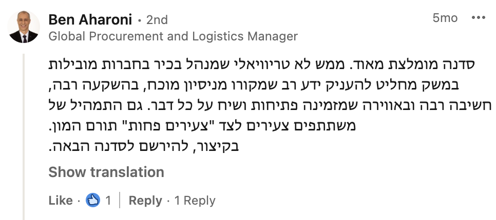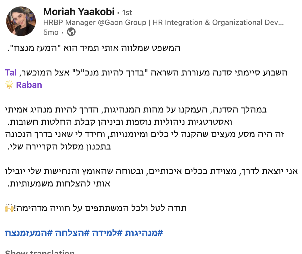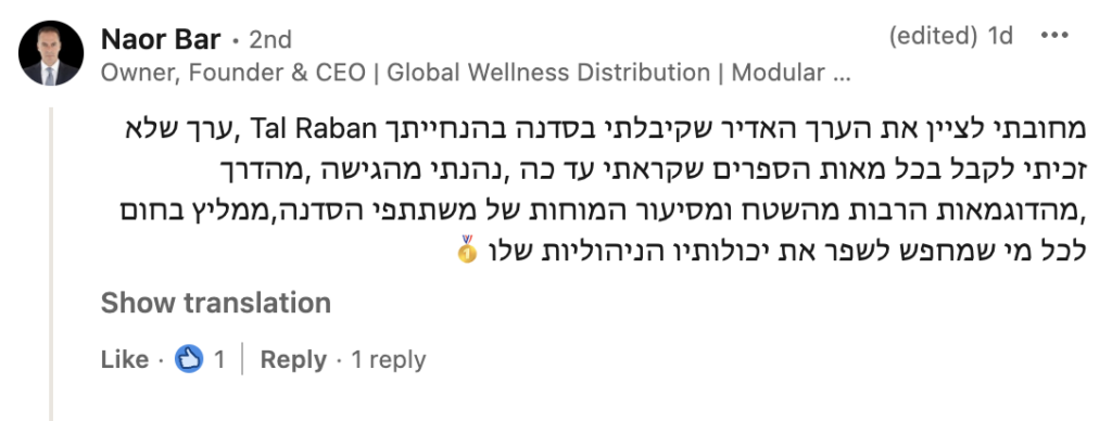 את הלמידה המשמעותית שרכשתי לאורך שנות הקריירה איגדתי בספר "הדרך להיות מנכ"ל" ואני מיישם כעת מול מנהלים מדרגים שונים מדרג הביניים דרך מנהלי חטיבות ומנכ"לים. אני מאמין שלמידה והכרות עם האתגרים ואפשרויות הפתרון לפני שכל אחד נאלץ לפגוש אותם במסלול הקריירה שלו, יכולים לקצר משמעותית את הדרך לתפקידים בכירים ולבסוף לכסא המנכ"ל ומכאן הייעוד החדש שלי – לתת ערך למנהלים שמבקשים לצעוד "בדרך להיות מנכ"ל"